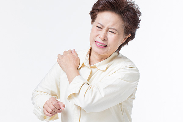 ▶ 어깨를 움직일 때 뻣뻣함이 느껴지고 날카로운 것으로 찌르는 통증이 느껴집니다.